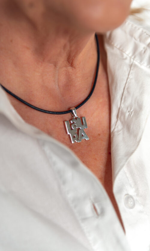 Todas nuestras joyas personalizadas son de plata maciza con distintos acabados: brillo, mate o rodio.
