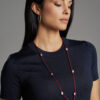 Trenzado a mano, el collar Gri combina las bolas de cuarzo en tonos grises y pequeñas piezas de acero en forma de platillo y tubo.