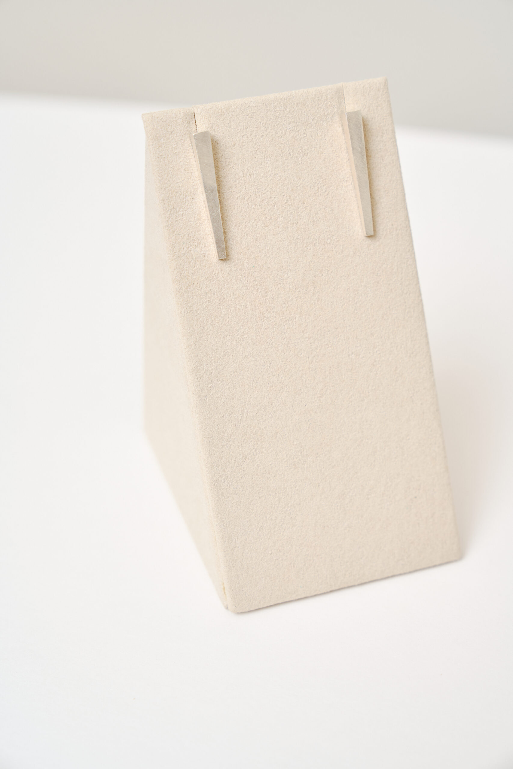 Cada pendiente presenta un colgante fijo que representa un péndulo, capturando la esencia de una silueta estilizada y elegante.