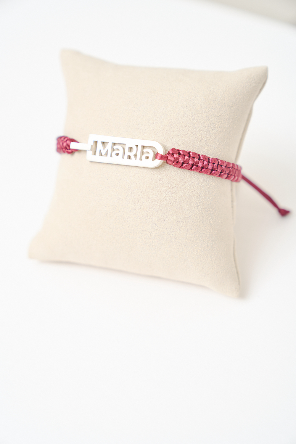 Las pulseras ARCO son personalizadas. Enmarcan un nombre o una fecha con un significado especial para ti. Están hechas en plata de ley y cadena de macramé trenzado.